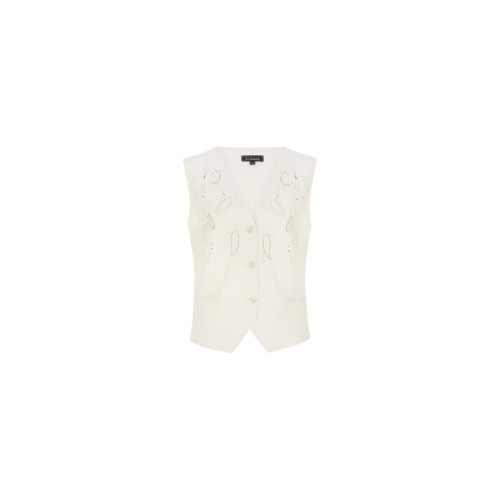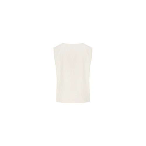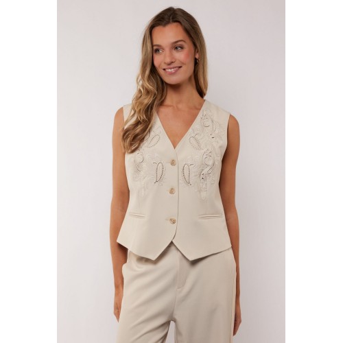 Het mouwloze silhouet en de elegante V-hals creëren een vrouwelijke, gestroomlijnde lijn. De subtiele borduurdetails aan de voorzijde geven een luxe en onderscheidend karakter. De pasvorm sluit mooi aan. Comfortabel, flatterend en stijlvol tegelijk.