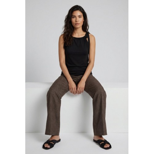 Combineer de Top Halter Soft met een elegante pantalon en sandalen voor een verfijnde look.