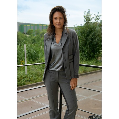 Deze grijze blazer van ZIP73 combineert klassieke elegantie met een moderne twist. De tailored pasvorm geeft je een krachtige en professionele uitstraling, terwijl de subtiele metallic details net dat beetje extra flair toevoegen.